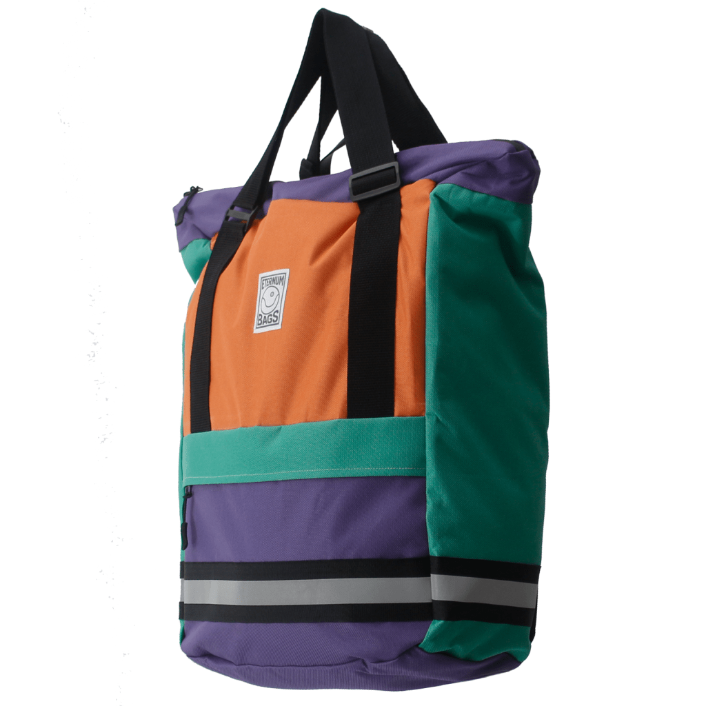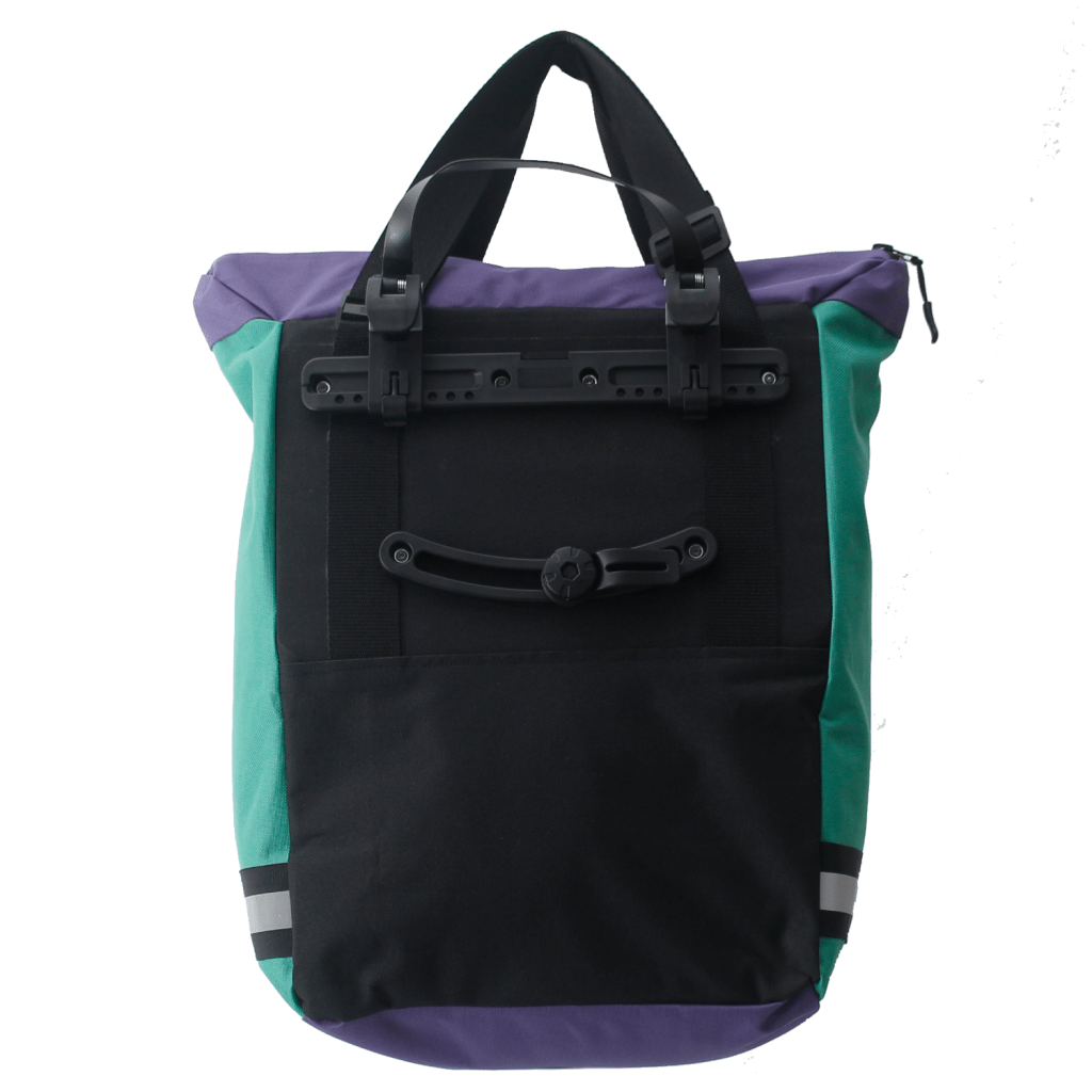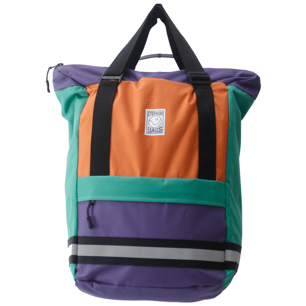 Ideal for daily city riding, weekend errands, or longer urban commutes, the Atlas combines practical carrying capacity with a bold orange, purple, and green colorway. Its spacious main compartment offers room for essentials—whether it’s work gear, groceries, or extra layers—while the quick-access front pocket keeps smaller items ready at hand.